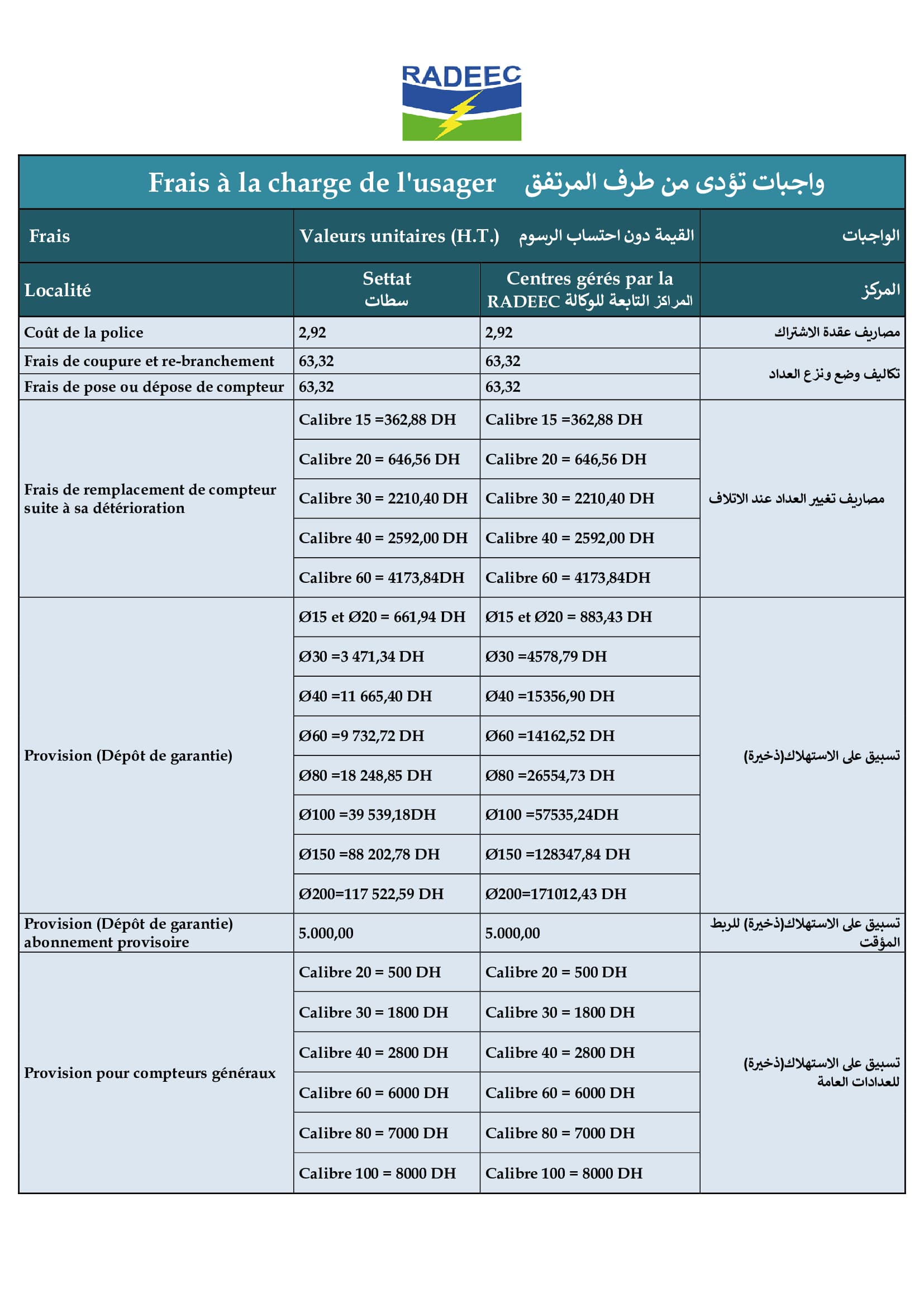 Dans le cadre de l’application des dispositions de la loi 55-19 relative à la simplification des procédures.La RADEEC s’engage à mettre à la disposition de ces clients toutes les informations nécessaires pour l’accès et l’amélioration continue de la qualité de ces services.
